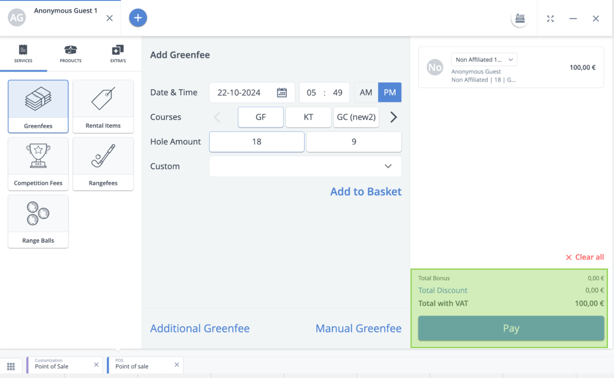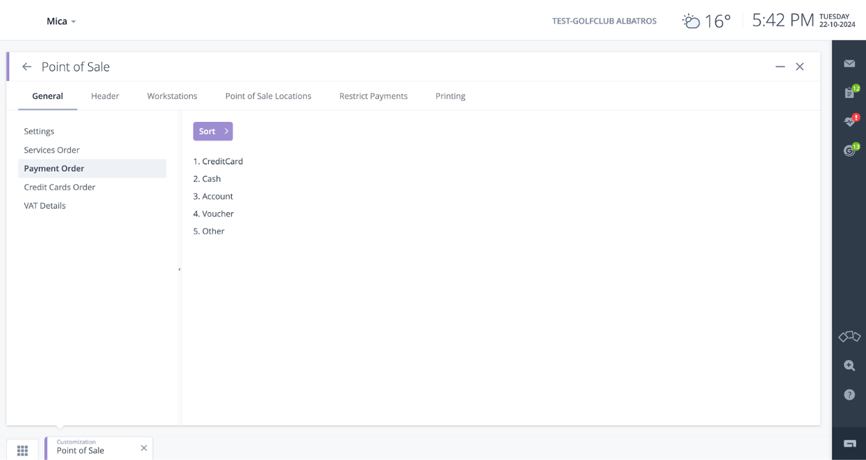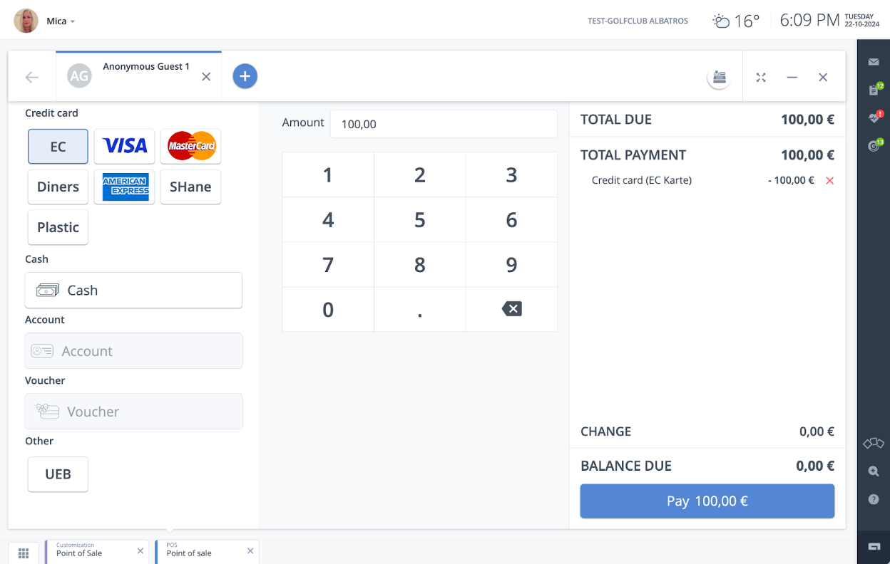 The order of payment types can now be individually configurated under the tile “Customization” in the Point of Sale section to align with your club’s most-used methods.